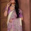 Saree with blouse piece (unstitched); fall and edging work not included.