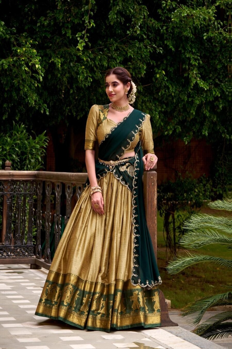 Elevate your festival look with our chic beige poly cotton classic Lehenga Choli. Crafted from high-quality poly cotton fabric, this stunning ensemble features intricate embroidery work that adds a touch of elegance. The classic style of this Lehenga Choli makes it a versatile piece that can be dressed up or down for various occasions. The beige color is timeless and flattering on all skin tones. Pair it with statement jewelry and embellished sandals for a glamorous look. The poly cotton fabric is lightweight and breathable, perfect for long hours of wear during festive celebrations. Stand out in style with this must-have Lehenga Choli that combines tradition with modern sophistication.