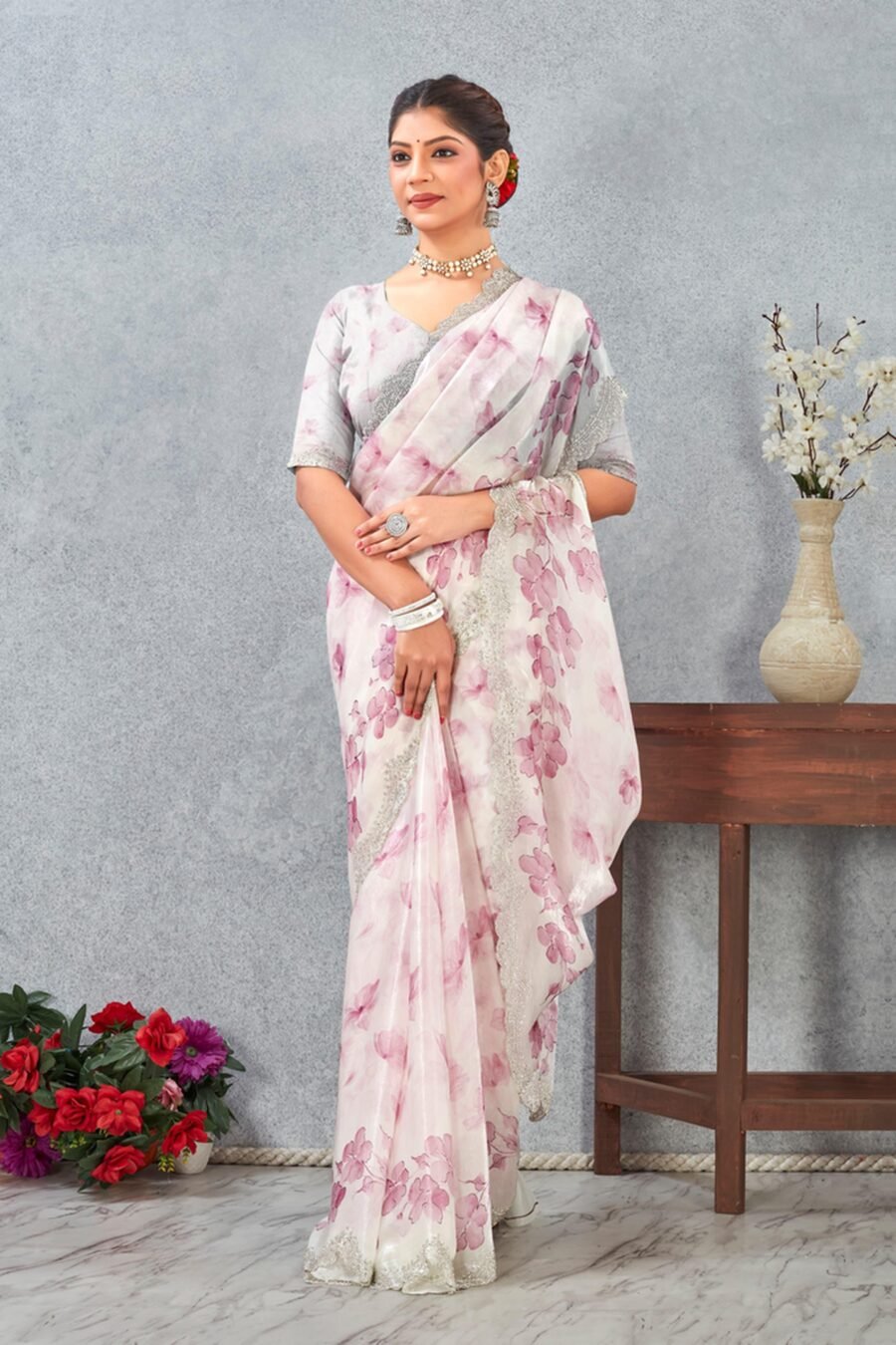 Elevate your festive look with our Dreamy White Satin Traditional Saree. Crafted from luxurious satin fabric, this saree features intricate digital print work that adds a touch of elegance and charm. The white color symbolizes purity and grace, making it perfect for special occasions like festivals. The traditional style of this saree exudes timeless beauty, while the smooth satin fabric drapes beautifully, enhancing your silhouette. Pair it with statement jewelry and a sleek updo for a complete ethnic look. Satin fabric offers a luxurious feel, is lightweight, and has a subtle sheen that adds a touch of glamour. Embrace tradition with a modern twist in this stunning saree.