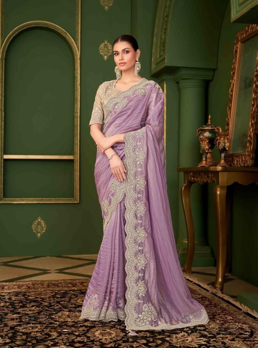 Make a statement at any party with this modern purple georgette traditional saree. The exquisite embroidery work adds a touch of elegance to this classic piece, making it perfect for special occasions. The georgette fabric drapes beautifully, flattering your silhouette and ensuring comfort all day long. Pair this saree with traditional jewelry and heels for a complete look that will turn heads. Stand out from the crowd with this timeless piece that combines traditional style with a modern twist.