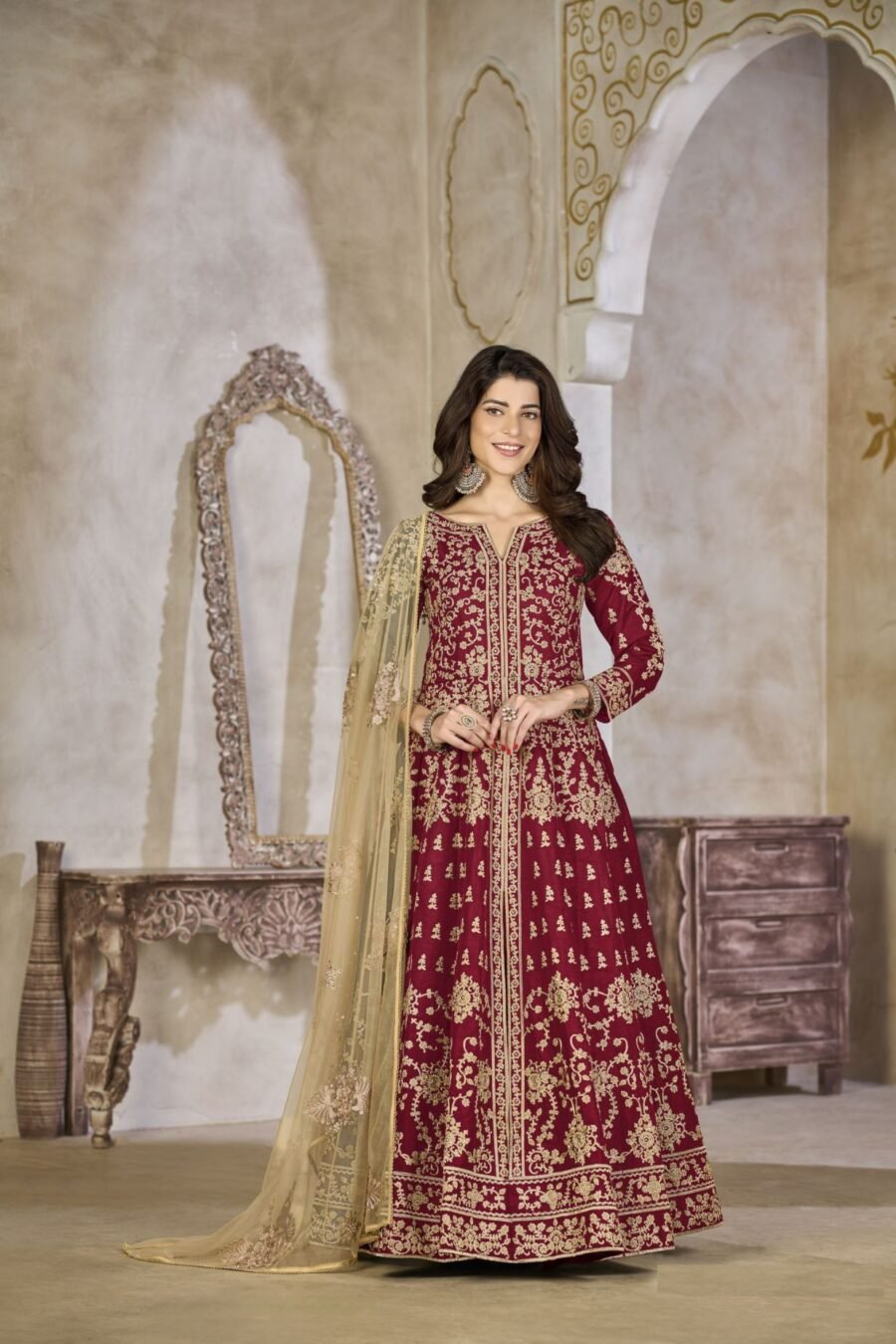 Stylish Red Art Silk Anarkali Salwar Kameez