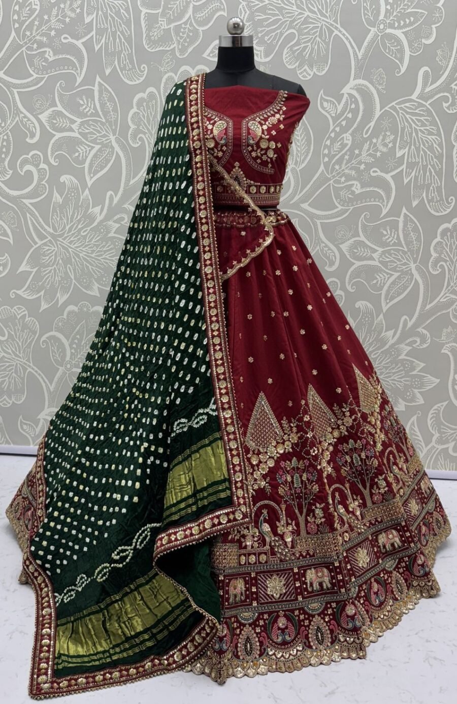 Timeless Red Slub Silk Traditional Lehenga Choli – 60556-2906-C