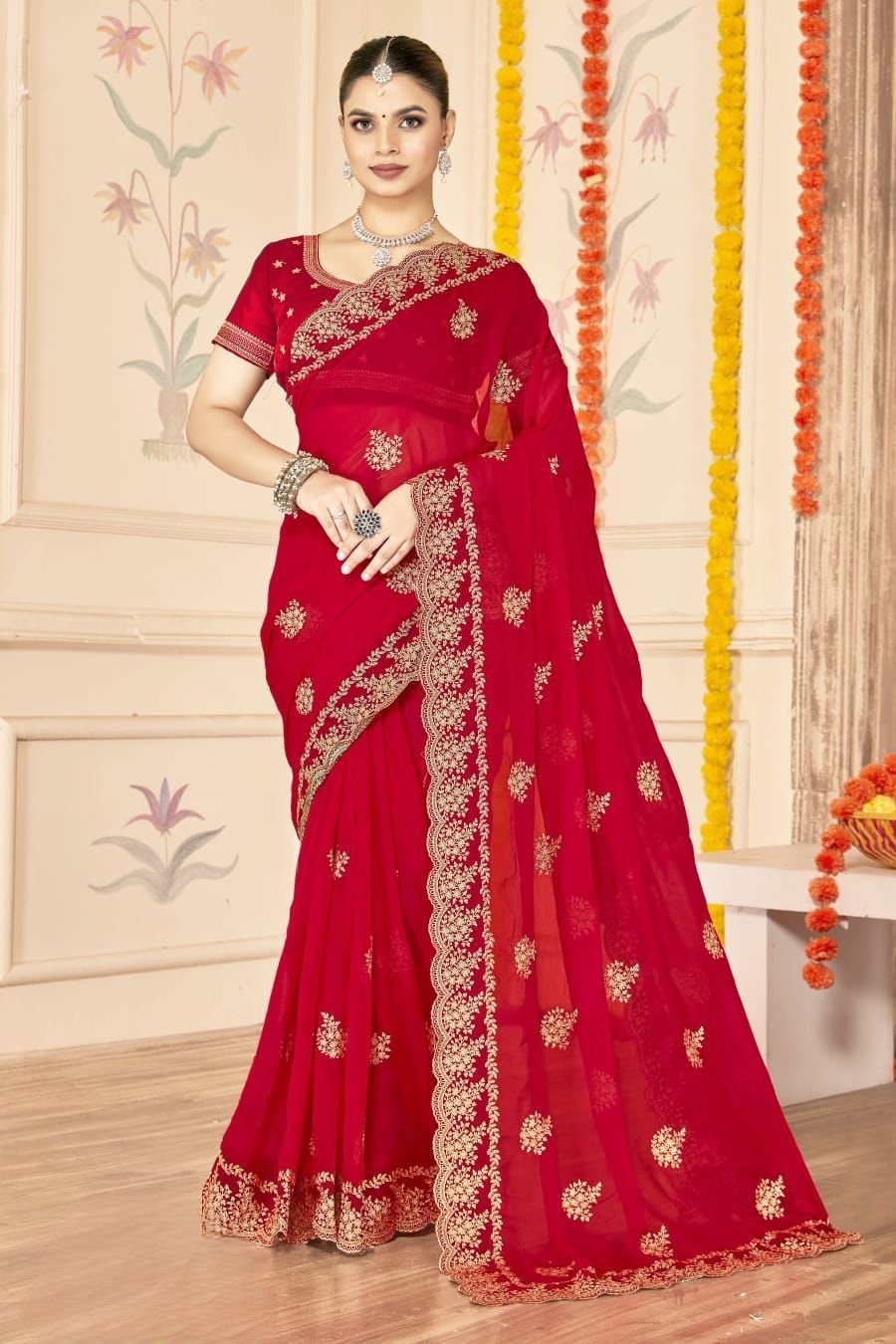 Elevate your ethnic wardrobe with this ravishing red moss silk traditional saree. The intricate embroidery work adds a touch of elegance, making it perfect for party wear occasions. Crafted from high-quality moss silk fabric, this saree drapes beautifully and exudes a luxurious feel. The vibrant red color flatters all skin tones, making it a versatile addition to your collection. Style this saree with statement jewelry and a sleek updo for a glamorous look that is sure to turn heads. The soft and breathable fabric of moss silk ensures comfort all day long, while the traditional design adds a timeless charm. Upgrade your traditional wear game with this stunning saree that combines classic style with modern sophistication.